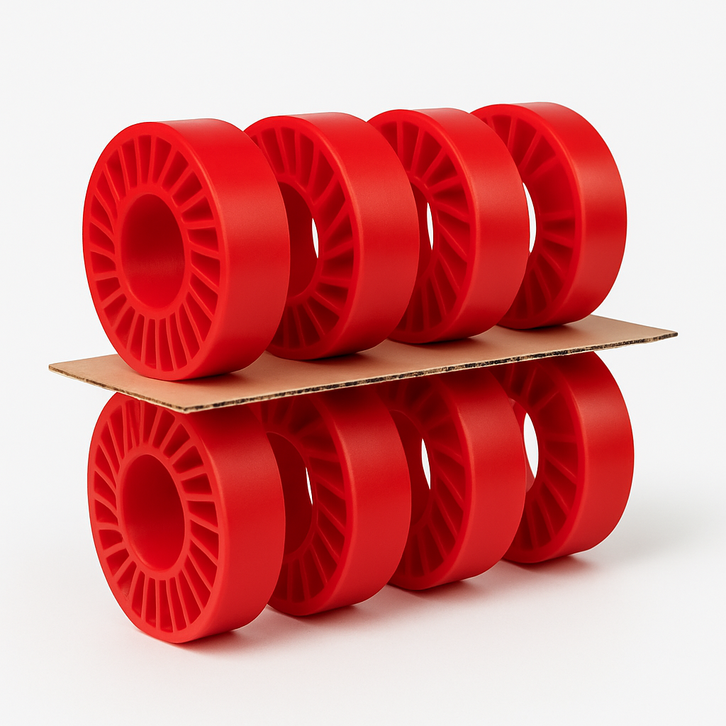 Our durable Polyurethane Feed Wheels and Anti-Crush Wheels are specially engineered to handle delicate corrugated sheets with precision and care. Designed for consistent and gentle feeding, these wheels prevent board crushing while maintaining high production quality. Manufactured with premium-grade polyurethane, they ensure excellent wear resistance, long service life, and smooth operation under demanding conditions. By reducing damage to sheets and improving line efficiency, they help manufacturers maintain consistent output and minimize downtime. Easy to install and maintain, our Feed Wheels and Anti-Crush Wheels are the perfect solution for reliable and efficient corrugated board production.